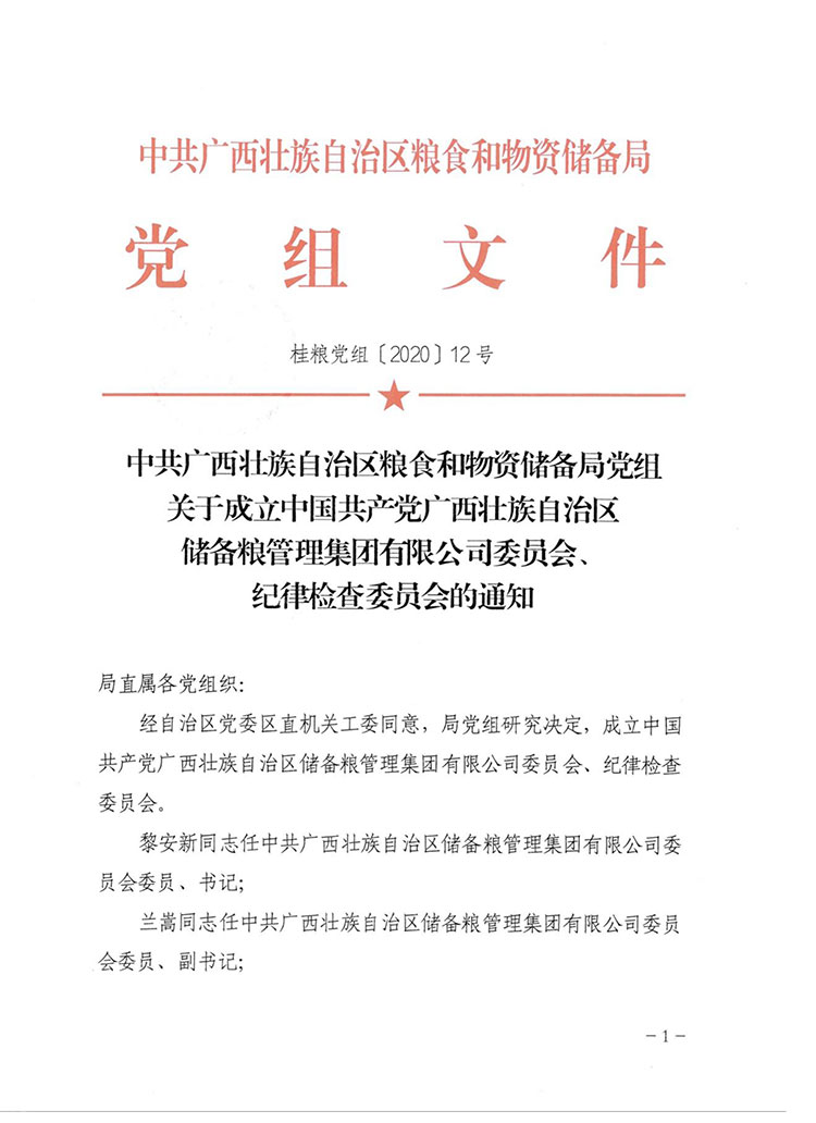 中共广西壮族自治区粮食和物资储备局党组关于成金年会国共产党2138cn太阳集团古天乐委员会、纪律检查委员会的通知